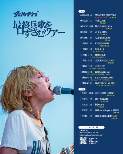 | 11/8(土) | [vIEWpOINt 喧伝巡業2025] vIEWpOINt (福岡) 朱雀 nibs Black Market 18:30 / 19:00 ¥2,400 / ¥2,900 (DRINK別) ■前売チケット 予約:メール 前日締切 公演日・お名前フルネーム・お電話番号 上記3点の明記をお願い致します。 |