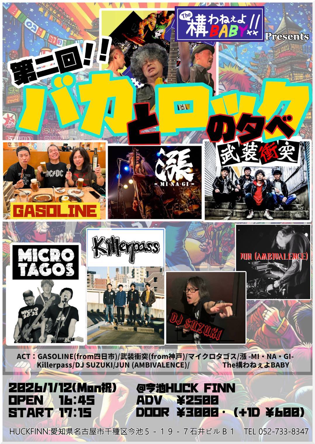 ![]() 2026 1/12(MON) [The構わねぇよBABY Presents 『第二回バカとロックの夕べ』] GASOLINE (四日市) 武装衝突 (神戸) 漲 -MI・NA・GI- マイクロタゴス Killerpass The構わねぇよBABY DJ SUZUKI JUN (AMBIVALENCE) |