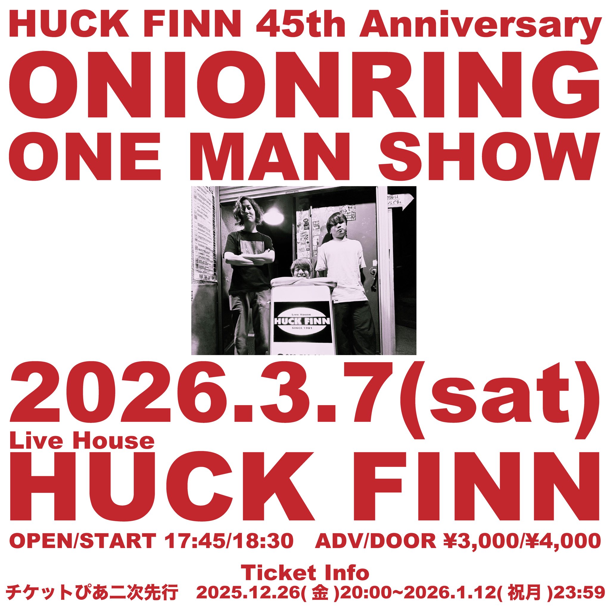 ![]() 3/7(SAT) =HUCK FINN 45th ANNIVERSARY= [ONIONRING ONE MAN SHOW] ONIONRING |