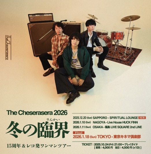 | 1/10(土) | [The Cheserasera 2026 冬の臨界] -15周年&レコ発ワンマンツアー- The Cheserasera 17:30 / 18:00 ¥4,000 / ¥4,500 (DRINK別) |