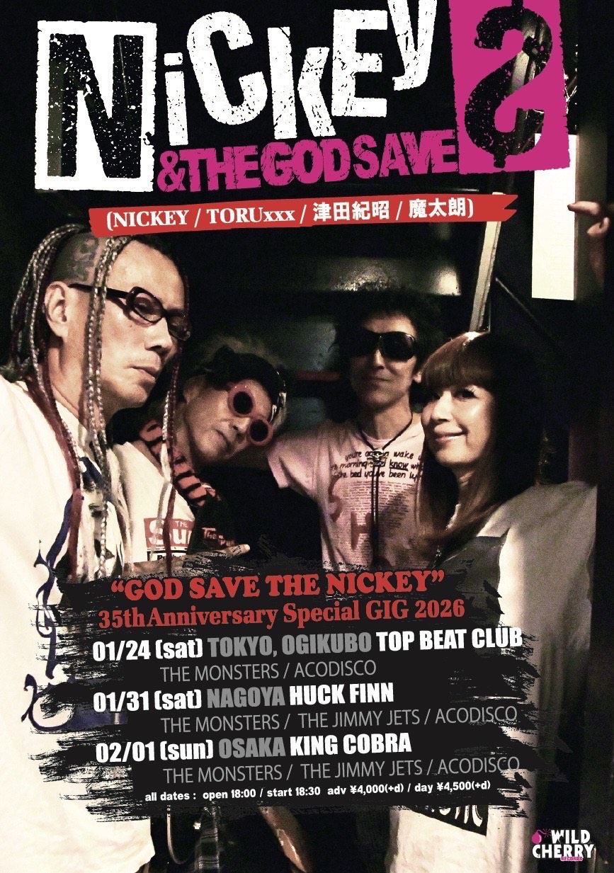 2026 1/31(SAT) [GOD SAVE THE NICKEY] -35th Anniversary Special GIG 2026- Nickey & The God Saves [Nickey / TORUxxx / 津田紀昭 / 魔太朗] THE MONSTERS THE JIMMY JETS ACODISCO |