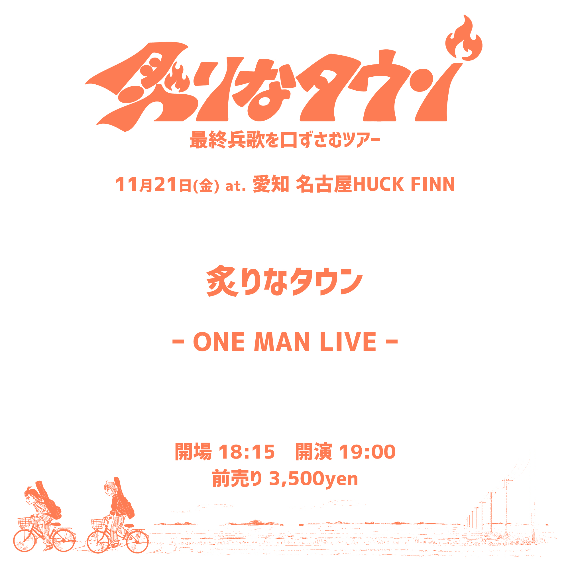 ![]() 11/21(FRI) [炙りなタウン 最終兵歌を⼝ずさむツアー] 炙りなタウン |