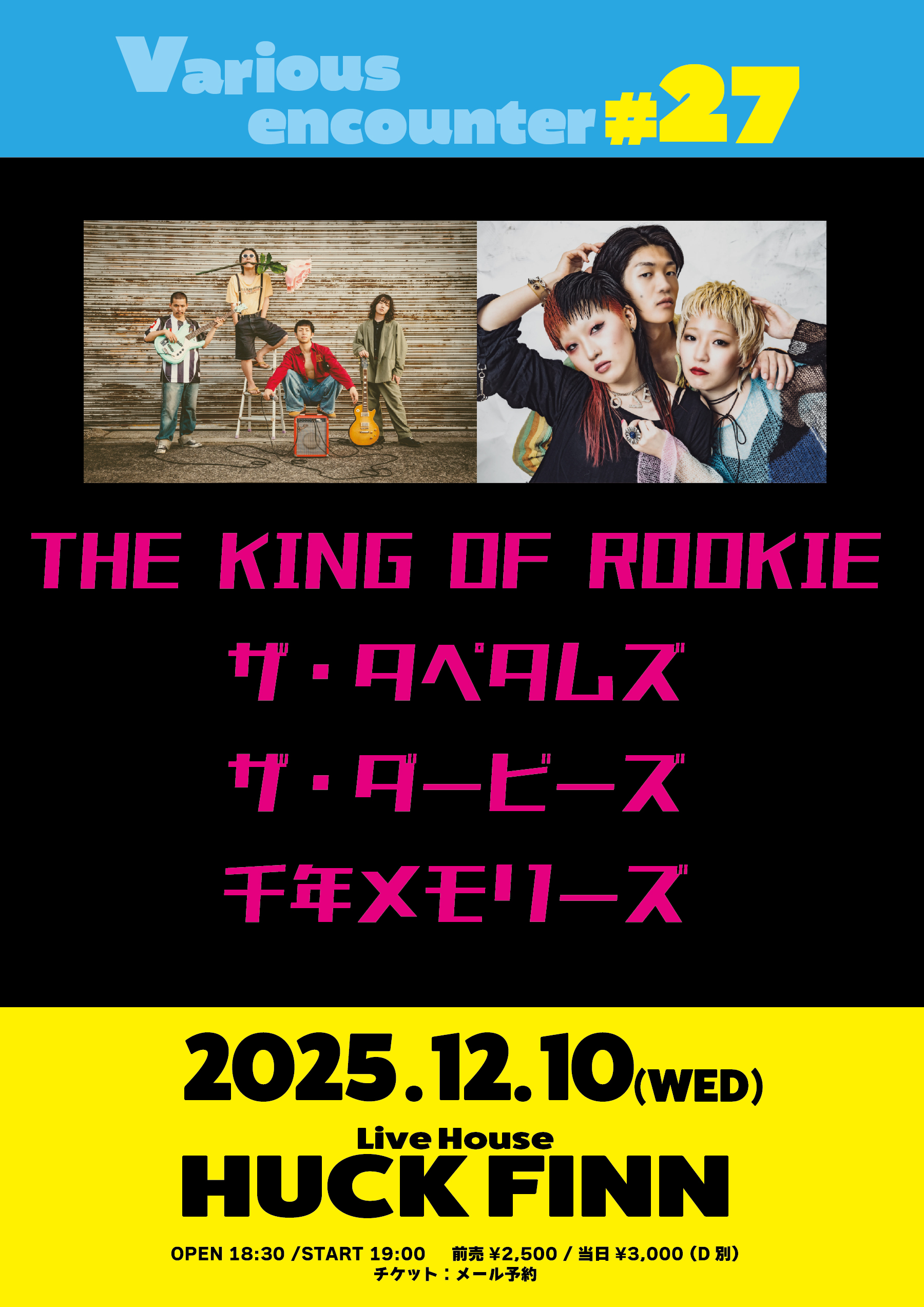 ![]() 12/10(WED) [Various encounter #27] THE KING OF ROOKIE ザ・タペタムズ ザ・ダービーズ 千年メモリーズ |