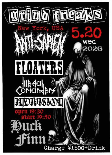 | 5/20(水) | [GRIND FREAKS] - Anti-Sapien Japan Tour - ANTI-SAPIEN (USA) FLOATERS ILLEGAL CORIANDERS INDIVISION 19:30 / 19:50 ¥1,500 (DRINK別) |