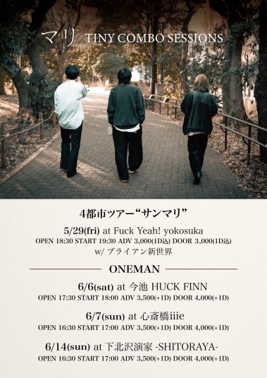 | 6/6(土) | [マリ-TINY COMBO SESSIONS- pre. 『4都市ツアー“サンマリ”』] マリ-TINY COMBO SESSIONS- ONEMAN 17:30 / 18:00 ¥3,500 / ¥4,000 (DRINK別) |