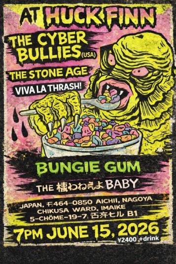 | 6/15(月) | THE CYBER BULLIES (USA) THE STONE AGE BUNGIE GUM The構わねぇよBABY Viva La Thrash! 18:30 / 19:00 ¥2,400 / ¥2,900 (DRINK別) ■前売チケット 予約:メール 前日締切 公演日・お名前フルネーム・お電話番号 上記3点の明記をお願い致します。 |