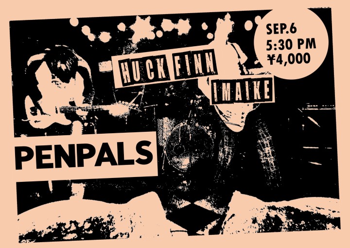 | 9/6(日) | [PENPALS 30th & HUCK FINN 45th Anniversary] -Nevermind- PENPALS 17:30 / 18:00 ¥4,000 / 当日券未定 (DRINK別) |