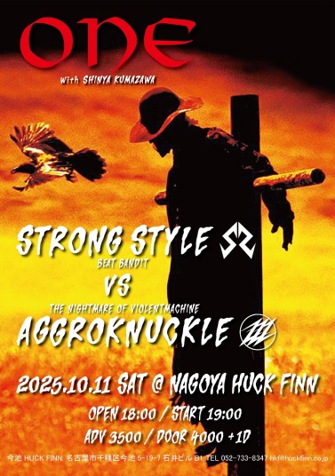 | 10/11(土) | [ ONE ] STRONG STYLE VS AGGROKNUCKLE 18:00 / 19:00 ¥3,500 / ¥4,000 (DRINK別) ■前売チケット 予約:メール 前日締切 公演日・お名前フルネーム・お電話番号 上記3点の明記をお願い致します。 |