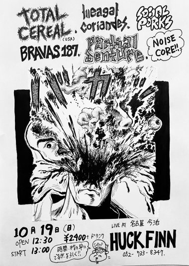 | 10/19(日) | TOTAL CEREAL (USA) BRAVAS 187 illegal corianders SOCIAL PORKS PARTIAL DENTURE 12:30 / 13:00 ¥2,400 (DRINK別) |